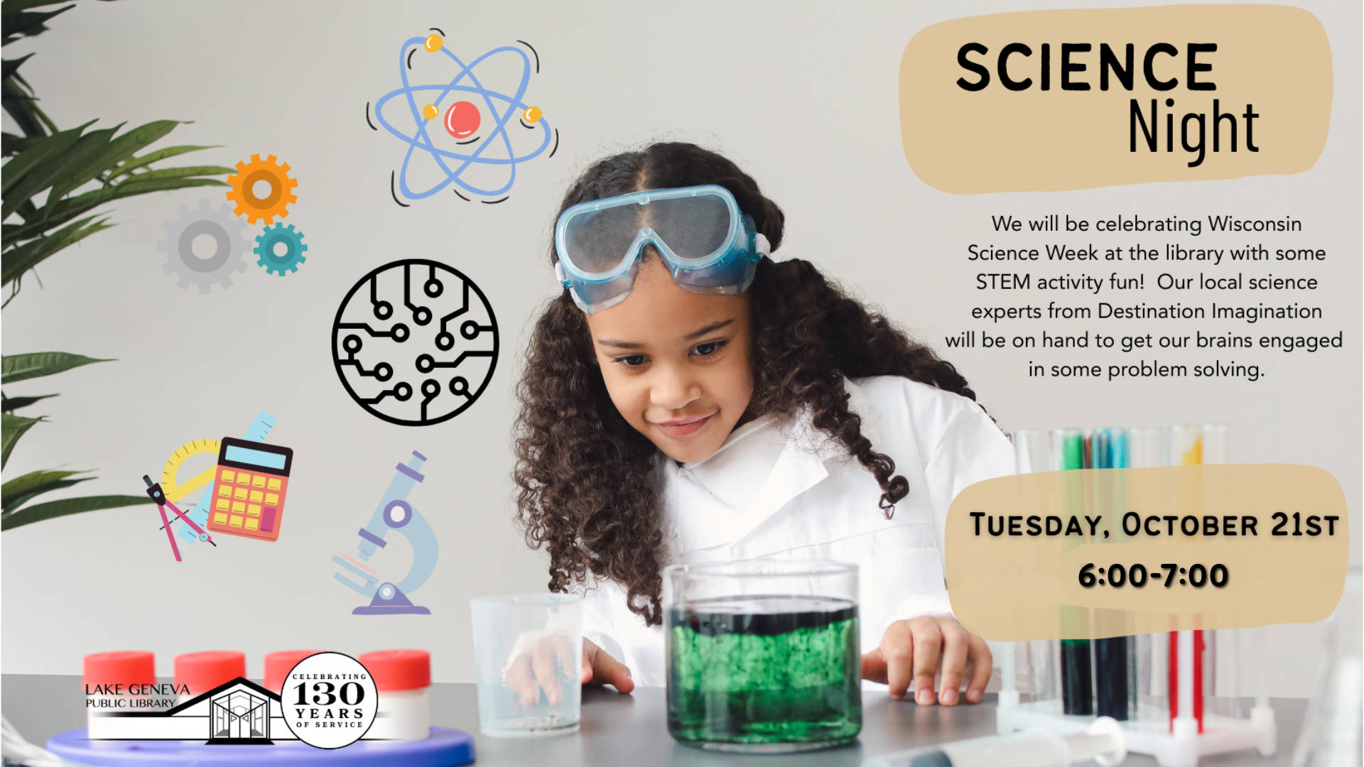 We will be celebrating Wisconsin Science Week at the library with some STEM activity fun! Our local science experts from Destination Imagination will be on hand to get our brains engaged in some problem solving.